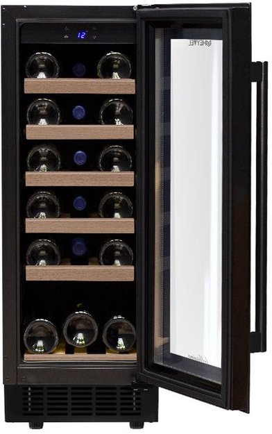 Винный шкаф Meyvel MV18-KBT1 — оптимальная модель для домашнего хранения напитков. Устройство вмещает до 19 бутылок, которые располагаются на выдвижных деревянных полочках. Прибор относится к встраиваемым — устанавливается в мебельный гарнитур, поэтому с легкостью интегрируется в любое интерьерное решение. Черный цвет универсален, имеет расширенные возможности для сочетания с разнообразными дизайнами. Прочная и надежная дверца с двойным стеклопакетом обеспечивает хорошую герметизацию и помогает поддерживать установленные настройки внутри камеры. Для защиты напитков от ультрафиолетового излучения предусмотрен специальный защитный слой. Винный шкаф Мейвел MV18-KBT1 оборудован светодиодным освещением для удобного просмотра содержимого. Прибор работает тихо, поэтому не создает неудобств для пользователей.