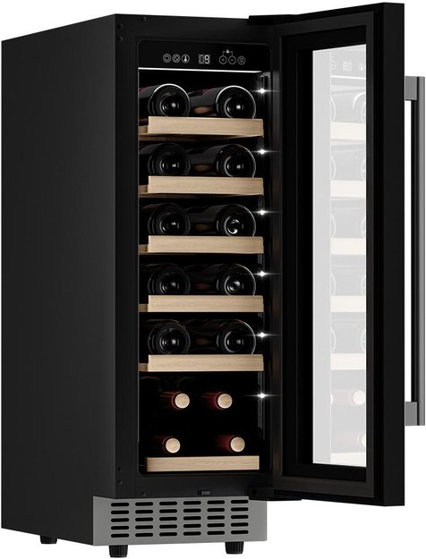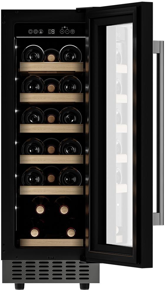 Винный шкаф Meyvel MV19-KST1 — компактная модель для правильного хранения напитков. Внутри поддерживаются оптимальные условия (по температуре и влажности), которые благоприятно воздействуют на вино, бережно сохраняя его вкус и запах. На деревянных полках можно разместить до 19 бутылок. Это хорошее значение для домашней эксплуатации. Настройка параметров работы происходит с электронной панели управления, которая располагается сверху, за дверцей. Сенсорные кнопки легко нажимаются, а на дисплее демонстрируется необходимая информация о работе устройства. Благодаря тонировке на двери блокируется попадание ультрафиолетового излучения, которое пагубно влияет на вино. Благодаря вентиляции внутри не скапливаются запахи, которые могут попасть в напиток через пробку. В винном шкафу Мейвел MV19-KST1 предусмотрено светодиодное освещение.