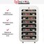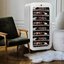 Винный шкаф Meyvel MV22-KWF1 — современное устройство для правильного хранения винных напитков. Изделие белого цвета — нестандартный и стильный вариант. Скругленные углы смотрятся гармонично. Регулируемые ножки помогут компенсировать неровности пола — правильная установка гарантирует качественную и тихую работу прибора. Внутри располагаются деревянные полочки — на них удобно расположить бутылки. Всего вмещается до 22 бутылок — хорошее значение для домашней коллекции. На двери представлено три стекла и защита от ультрафиолета. Сенсорное управление отличается быстрой реакцией на активацию, что обеспечивает дополнительный комфорт при настройке параметров работы. На дисплее можно увидеть текущие температурные настройки. Винный шкаф Мейвел MV22-KWF1 оснащен угольным фильтром, который защищает напитки от посторонних запахов и привкусов, которые могут проходить через пробку.