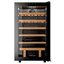 Стеклянная дверь — дополнительный изящный штрих к общему дизайну модели. Специальное покрытие защищает вино от влияния ультрафиолетовых лучей, которые проникают, если шкаф находится в солнечной комнате. Хранение становится еще безопаснее и герметичнее благодаря нескольким слоям стекол. Цвет корпуса — черный.