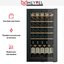 Стеклянная дверь — дополнительный изящный штрих к общему дизайну модели. Специальное покрытие защищает вино от влияния ультрафиолетовых лучей, которые проникают, если шкаф находится в солнечной комнате. Хранение становится еще безопаснее и герметичнее благодаря нескольким слоям стекол. Цвет корпуса — черный.
