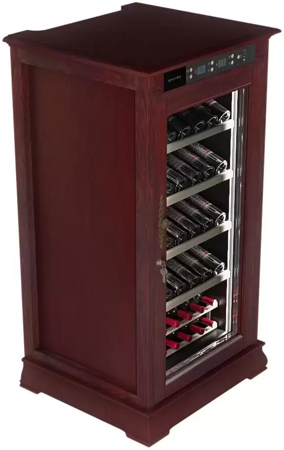Винные шкафы — домашняя техника, относящаяся к средней и высокой ценовой категории. Разнообразие дизайна и расцветок позволяет подобрать модель для самых взыскательных покупателей. Отдельно стоящие модели в классическом стиле, с корпусами из натурального дерева с тонировкой или без нее отлично смотрятся и дома, и в офисах. Производители предлагают модели из различных пород дерева во всех оттенках коричневого цвета, от самых светлых до темных — орех, бук, дуб, венге, зебрано. Широко представлены модели в корпусах из красного дерева, в том числе интересных оттенков «red wine» и «red chery». В некоторых моделях сочетаются дерево и металл или два вида дерева — как, например «вишня/дуб» у шкафов IP.