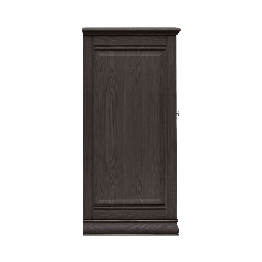 Стеклянная дверь — дополнительный изящный штрих к общему дизайну модели. Специальное покрытие защищает вино от влияния ультрафиолетовых лучей, которые проникают, если шкаф находится в солнечной комнате. Хранение становится еще безопаснее и герметичнее благодаря нескольким слоям стекол. Цвет корпуса — темный шоколад.