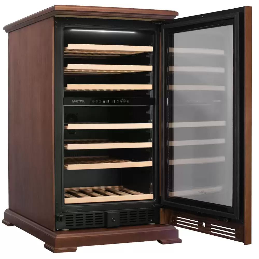Винный холодильник Meyvel MV77PRO-KBT2 (Итальянский орех) имеет две температурные зоны, в которых одновременно можно хранить разные сорта алкоголя и выставлять разные сочетания настроек. Он устанавливается отдельно, что удобно, если у вас есть специальное помещение — кладовая, погреб и т.д. Количество бутылок, которое можно разместить с учетом полной комплектации и из расчета объема бутылки 0,75 л, — 77 шт.