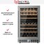 Стеклянная дверь — дополнительный изящный штрих к общему дизайну модели. Специальное покрытие защищает вино от влияния ультрафиолетовых лучей, которые проникают, если шкаф находится в солнечной комнате. Хранение становится еще безопаснее и герметичнее благодаря нескольким слоям стекол. Цвет корпуса — нержавеющая сталь. Дверь можно перевесить на другую сторону, поэтому вариантов размещения его в доме становится больше.