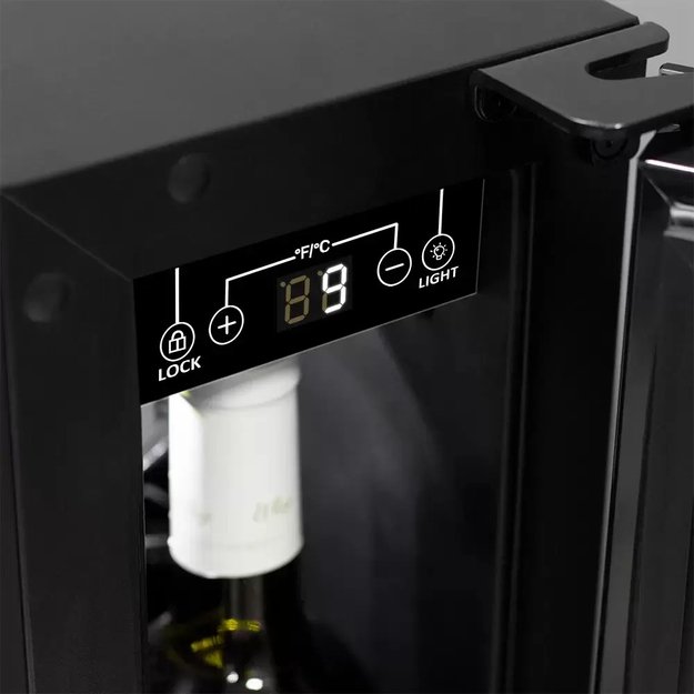 Большинство современных винных шкафов имеет электронное управление, они могут оснащаться обычными цифровыми дисплеями, на которых будет отображаться минимум информации — о включении, температуре в камере и возникших неисправностях. Однако в большинстве моделей используются текстовые сенсорные дисплеи из нескольких сегментов. С помощью кнопок сенсорного меню на этих дисплеях можно отображать и регулировать температуру в каждой зоне отдельно с точностью до градуса, выбирать уровень влажности, задавать дополнительные опции — отключение сигнализации, включение вентиляции и внутреннего освещения, активацию защиты от детей, тип отображения температуры ºF/ºC. Здесь же будут появляться коды ошибок, выданные системой обнаружения неисправностей.