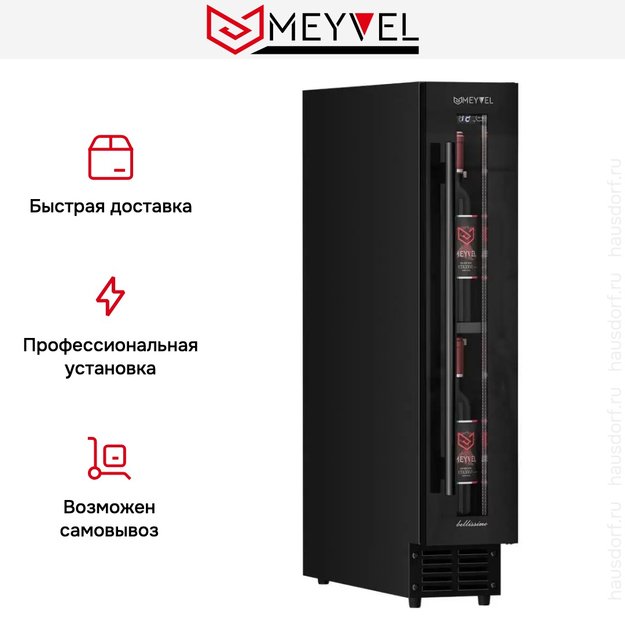 Винный шкаф Meyvel MV9-KBT1 — элегантный прибор для правильного хранения вина. Пользователю доступны настройки температурного режима и влажности, поэтому, в зависимости от напитка, можно менять текущие настройки. Преимущество данной модели в том, что она позволяет располагать бутылки как горизонтально, так и вертикально. Последний способ удобен, когда вино уже открыто или для демонстрации коллекционного напитка. Дверца легко открывается при помощи накладной ручки, но при этом обеспечивает качественную герметизацию, чтобы не нарушить текущие настройки работы. Тонировка защищает от ультрафиолетового излучения, которое может пагубно влиять на вино. При необходимости пользователю доступна опция перенавески двери, если того требует конфигурация помещения. Винный шкаф Мейвел MV9-KBT1 отличается тихой работой.