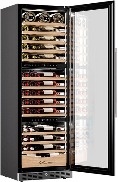 Двухтемпературные предназначены для хранения в разных условиях красного и белого вина. Трехтемпературные — для белого, красного, игристого. Мульти — система хранения из более чем трех зон с разным климатом.