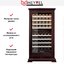 Электронное управление помогает быстро разобраться в том, как функционирует эта модель, и легко настроить все необходимые параметры. На дисплее отображаются данные, которые собирают датчики в камере. Лампочки, расположенные внутри, хорошо подсвечивают бутылки. Всего полок, на которых можно разместить коллекцию, в шкафу 9 шт.