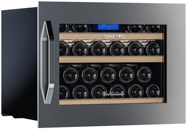 Для длительного сохранения установленных параметров в винных шкафах Meyvel используется дверца с многослойным остеклением. Такое решение позволяет удерживать холод внутри камеры вне зависимости от температуры в помещении, а также сохранить температуру при отключении электроэнергии.
