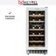 Винный холодильник Meyvel MV28NH-KWT2 имеет две температурные зоны, в которых одновременно можно хранить разные сорта алкоголя и выставлять разные сочетания настроек. Он встраивается в нишу, что удобно, если у вас ограничен метраж помещения. Благодаря компактным размерам данная модель — отличный выбор для офиса, гостиничного номера. Количество бутылок, которое можно разместить с учетом полной комплектации и из расчета объема бутылки 0,75 л, — 28 шт.