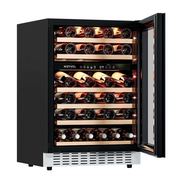 Винный холодильник Meyvel MV46NH-KWT2 имеет две температурные зоны, в которых одновременно можно хранить разные сорта алкоголя и выставлять разные сочетания настроек. Он встраивается в нишу, что удобно, если у вас ограничен метраж помещения. Благодаря компактным размерам данная модель — отличный выбор для офиса, гостиничного номера. Количество бутылок, которое можно разместить с учетом полной комплектации и из расчета объема бутылки 0,75 л, — 46 шт.