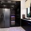 Встраиваемые холодильники для вина оснащаются специальной системой вентиляции: охлаждающая система у них находится в нижней части корпуса спереди. На такие устройства не навешивается мебельный фасад: дверца с затемненным стеклом остается на виду и открывается на достаточно широкий угол для свободного выдвижения деревянных полок.