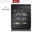 Стеклянная дверь — дополнительный изящный штрих к общему дизайну модели. Специальное покрытие защищает вино от влияния ультрафиолетовых лучей, которые проникают, если шкаф находится в солнечной комнате. Цвет корпуса — черный обсидиан. Дверь можно перевесить на другую сторону, поэтому вариантов размещения его в доме становится больше.