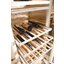 Полки в винных шкафах позволяют размещать бутылки для хранения в горизонтальном положении. Это необходимо, чтобы пробка постоянно смачивалась жидкостью и не пересыхала. Плотно закрытая пробка гарантирует, что внутрь бутылки не проникнет наружный воздух. Кислород, содержащийся в воздухе, может стать причиной ухудшения вкуса вина и даже его скисания. Кроме того, горизонтальное положение позволяет лучше оценить количество осадка. Материал изготовления полок выбирается, исходя из требований, предъявляемых к содержанию коллекции вин. Одним из основных требования является отсутствие или максимальное сокращение вибрации и хорошая фиксация бутылок на месте хранения. Даже если полка выдвигается, бутылки должны оставаться на своем месте. Второе требование исключает применение стеклянных полок, как в обычном холодильнике: на них почти невозможно зафиксировать бутылки.