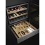 Дверца у большинства винных шкафов изготавливается из многослойного тонированного стекла. Такой материал, с одной стороны, позволяет оценивать коллекцию вин визуально, не открывая дверцу, в условиях стабильной температуры и влажности. С другой стороны, затемненное стекло с УФ-фильтром в виде напыления или специальной пленки надежно изолирует винные бутылки негативного воздействия ультрафиолетового излучения. Несколько слоев стекла обеспечивают при этом дополнительную защиту. Очень часто стекло в дверце заключается в рамку из дерева или металла. Натуральный или окрашенный металл или дерево не только способствуют прочности конструкции, но и превращают винный холодильник, особенно отдельно стоящий, в эффектный элемент обстановки.