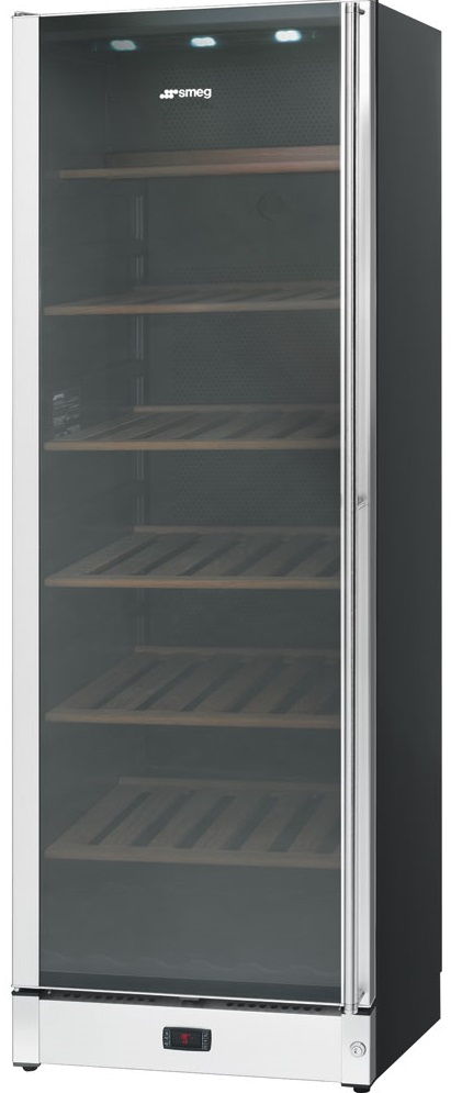 Двухтемпературная отдельно стоящая модель с возможностью встраивания высотой 185 см рассчитана на хранение 115 бутылок объемом 0,75 литра. Электронная панель управления дополнена цифровым термометром. Шесть регулируемых по высоте полок изготовлены из натурального дерева, при необходимости их можно снять, увеличив вместимость шкафа до 198 бутылок. Для лучшего обзора предусмотрена безопасная светодиодная подсветка. О повышении температуры предупредит специальный индикатор. Для защиты от детей служит замок на дверце. Угольный фильтр предохраняет от посторонних запахов.