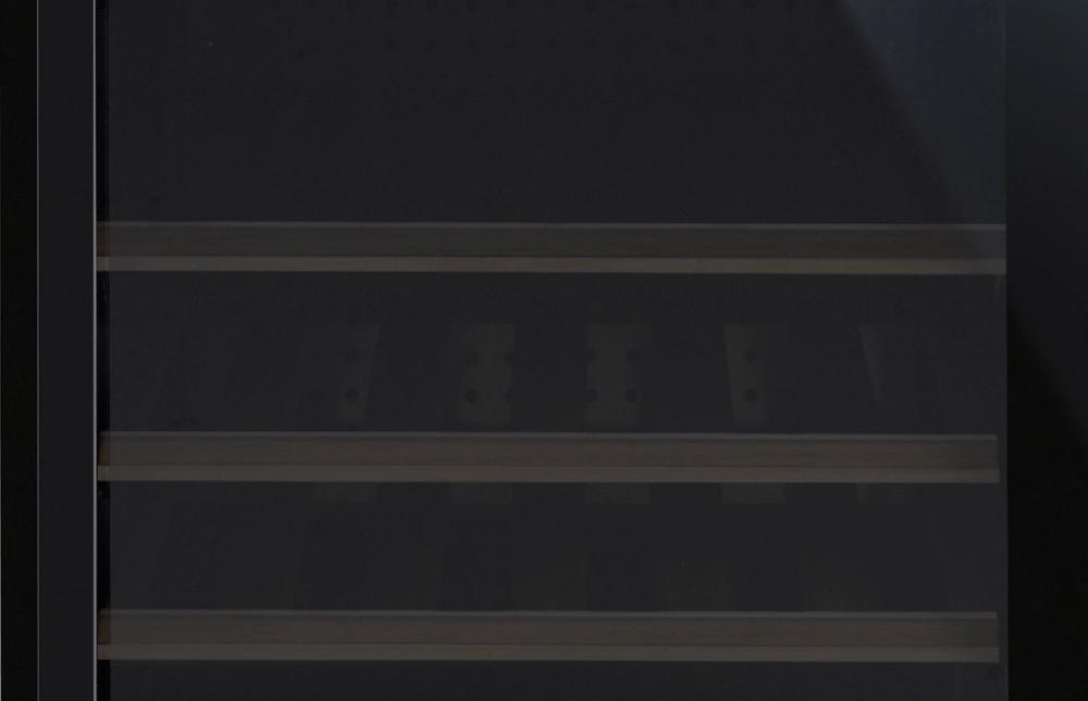 Полки в винных шкафах позволяют размещать бутылки для хранения в горизонтальном положении. Это необходимо, чтобы пробка постоянно смачивалась жидкостью и не пересыхала. Плотно закрытая пробка гарантирует, что внутрь бутылки не проникнет наружный воздух. Кислород, содержащийся в воздухе, может стать причиной ухудшения вкуса вина и даже его скисания. Кроме того, горизонтальное положение позволяет лучше оценить количество осадка. Материал изготовления полок выбирается, исходя из требований, предъявляемых к содержанию коллекции вин. Одним из основных требования является отсутствие или максимальное сокращение вибрации и хорошая фиксация бутылок на месте хранения. Даже если полка выдвигается, бутылки должны оставаться на своем месте. Второе требование исключает применение стеклянных полок, как в обычном холодильнике: на них почти невозможно зафиксировать бутылки.