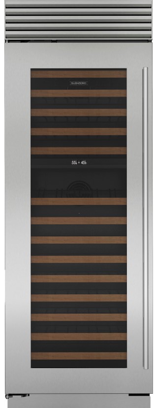 Винный холодильник SUB-ZERO ICBCL3050W/S/T/L имеет две температурные зоны, в которых одновременно можно хранить разные сорта алкоголя и выставлять разные сочетания настроек. Он встраивается в нишу, что удобно, если у вас ограничен метраж помещения. Количество бутылок, которое можно разместить с учетом полной комплектации и из расчета объема бутылки 0,75 л, — 146 шт.