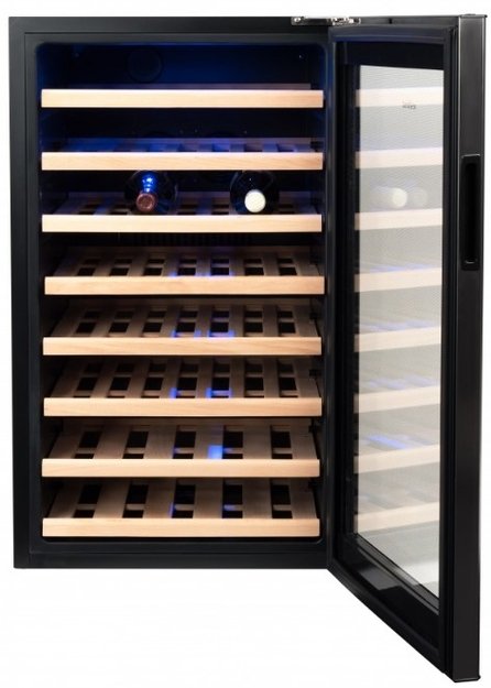 Vestfrost VFWC120Z1 — монотемпературный винный шкаф отдельностоящего типа установки. Модель снабжена восемью деревянными полками, на которых можно одновременно разместить до 52 бутылок объемом 0.75 л. Наличие температурного LCD-дисплея и LED-подсветки внутреннего пространства гарантирует комфортную эксплуатацию устройства.