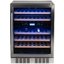 Дверца у большинства винных шкафов изготавливается из многослойного тонированного стекла. Такой материал, с одной стороны, позволяет оценивать коллекцию вин визуально, не открывая дверцу, в условиях стабильной температуры и влажности. С другой стороны, затемненное стекло с УФ-фильтром в виде напыления или специальной пленки надежно изолирует винные бутылки негативного воздействия ультрафиолетового излучения. Несколько слоев стекла обеспечивают при этом дополнительную защиту. Очень часто стекло в дверце заключается в рамку из дерева или металла. Натуральный или окрашенный металл или дерево не только способствуют прочности конструкции, но и превращают винный холодильник, особенно отдельно стоящий, в эффектный элемент обстановки.