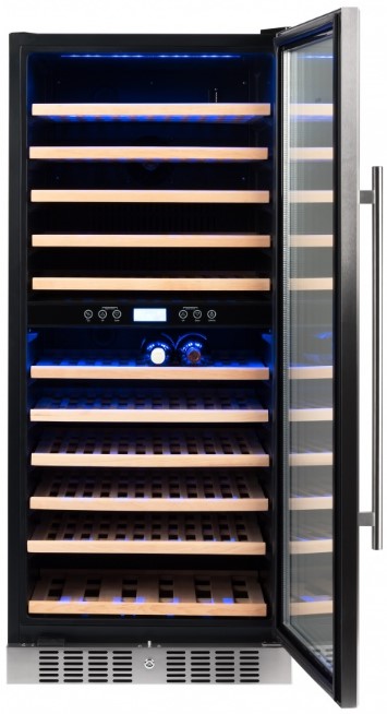 Двухтемпературные предназначены для хранения в разных условиях красного и белого вина. Трехтемпературные — для белого, красного, игристого. Мульти — система хранения из более чем трех зон с разным климатом.