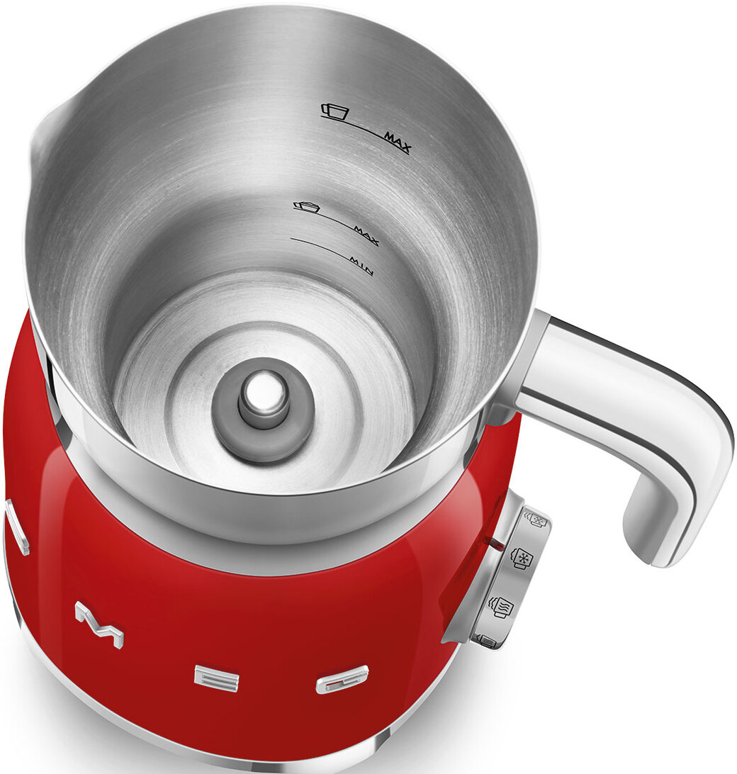 Вспениватель молока Smeg MFF11RDEU выполнен с использованием кувшина из высококачественной нержавеющей стали, которая отличается долговечностью и устойчивостью к коррозии. Благодаря специальной функции взбивания вы сможете легко получить густую, воздушную пену — идеальную основу для капучино, латте и других молочных напитков. Устройство надежно стоит на поверхности благодаря противоскользящим ножкам, что обеспечивает стабильность даже при интенсивной работе.