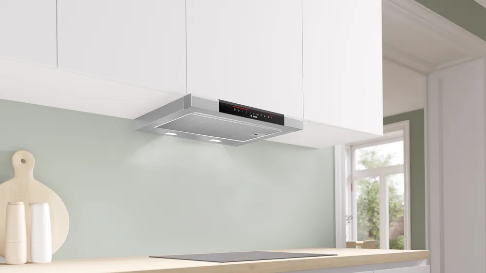 Сенсорное управление в вытяжках Bosch позволяет регулировать параметры работы устройства одним легким прикосновением. Гладкая панель управления без выступающих элементов эстетично выглядит, интуитивно понятна и очень удобна в уходе — для очистки ее достаточно протереть одним движением.