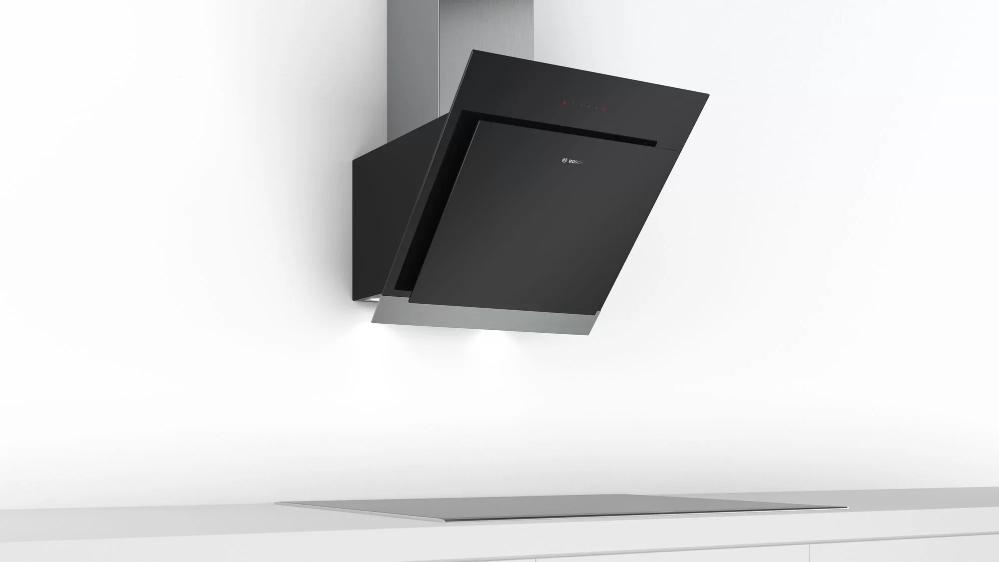 Bosch DWK67HM60 — стильная наклонная вытяжка для настенного монтажа над варочной поверхностью. Модель поддерживает три скоростных режима, выбор которых осуществляется посредством сенсорной панели управления. Дополнительный комфорт на кухне обеспечивается наличием встроенной светодиодной подсветки — яркой и экономичной.
