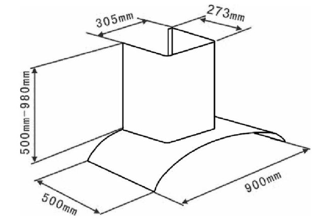 Для удобства пользователя следует выбирать вытяжку так, чтобы глубина даже самого большого купола не превышала глубину столешницы. У большинства современных купольных моделей глубина точно равна ширине, поскольку и стандартные варочные поверхности чаще всего имеют квадратную форму. Это значит, что вытяжка должна располагаться точно над поверхностью плиты, так, чтобы их оси совпадали. Стандартные размеры глубины таким образом могут составлять 30, 45, 50, 60, 80, 90, 100, 120 см.