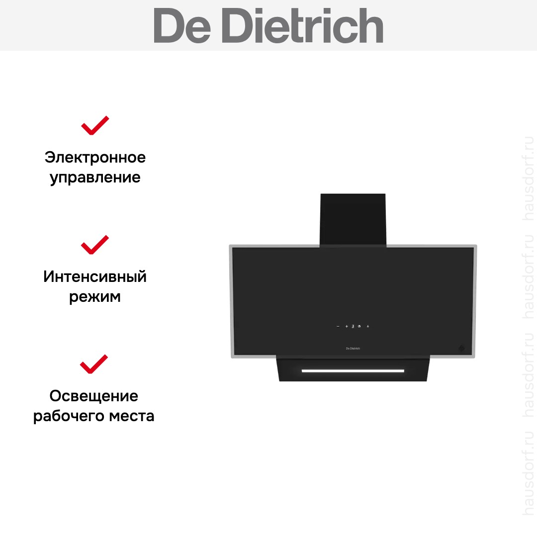 Данная вытяжка крепится на стену и имеет наклонную фронтальную панель, что придает изюминку дизайну и позволяет сохранить свободное рабочее пространство внизу. Обратите внимание на цветовые сочетания модели De Dietrich DHV4974B, чтобы органично вписать ее в свою квартиру. Оттенок корпуса: черный. Благодаря лампочкам, которые расположены на нем, можно освещать плиту и столешницу рядом, чтобы готовить было еще проще и приятнее.