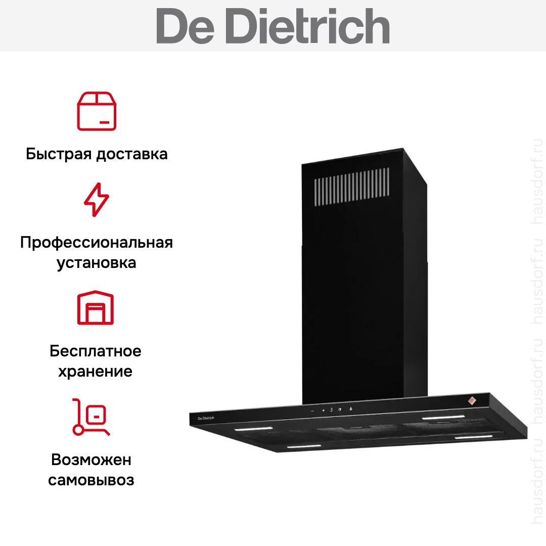 Вытяжка De Dietrich DHI2963B — это высококачественное устройство, которое сочетает в себе функциональность и стильный дизайн. Она выполнена в черном цвете, что делает ее идеальным дополнением к любому современному интерьеру. Материалы изготовления — окрашенный металл и стекло, что придает устройству элегантный и современный вид.