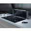 Воздух всасывается по периметру вытяжки через узкие щели. Он собирается в потоки, которые направляются прямо к фильтрам внутри, не рассеивается на кухне. Благодаря этой технологией вытяжку можно сделать компактнее и энергоэффективнее.