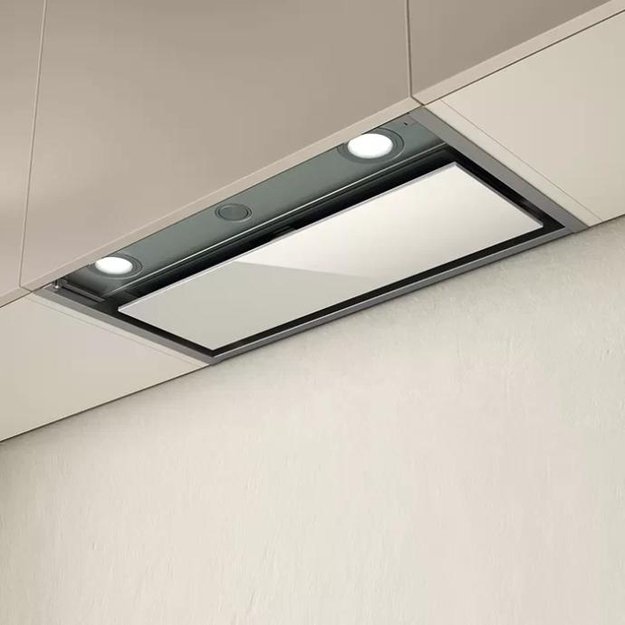 Вытяжка, встраиваемая в потолок, часто устанавливается над кухонным островом в просторной кухне и отличается достаточно высокой мощностью: она может работать как в режиме рециркуляции, так и в режиме отвода, так как воздуховод также скрыт в потолке. Вытяжки могут монтироваться в подвесной потолок либо устанавливаться в специальные многоярусные конструкции из гипсокартона непосредственно во время ремонта кухни. Для управления ими используется пульт ДУ.