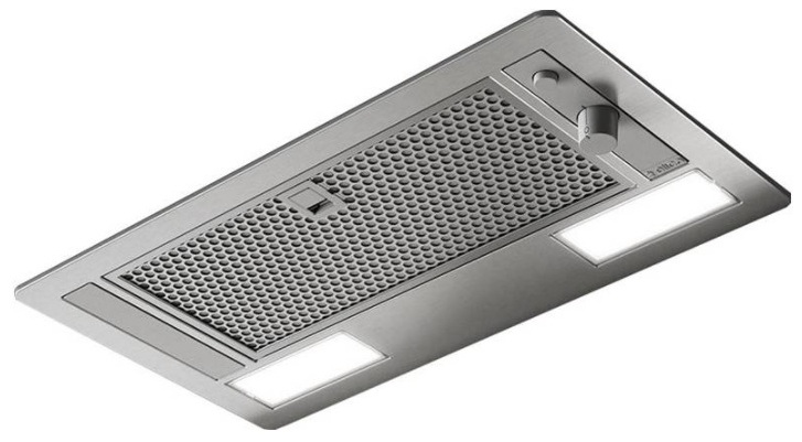 Вытяжки, встраиваемые в столешницу — эффективная инновация, которая подойдет для установки в кухне любой площади. Такие вытяжки размещаются за варочной поверхностью или рядом с ней. В отключенном состоянии всасывающая панель находится под столешницей, но после включения одной или нескольких конфорок она автоматически выдвигается при помощи специального лифтового механизма. Загрязненный воздух улавливается, не успевая распространиться по помещению. Когда вытяжка убрана, на виду остается только сенсорная панель управления. Недостатком подобных моделей является только сравнительно высокая цена.