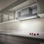 Вытяжки, встраиваемые в столешницу — эффективная инновация, которая подойдет для установки в кухне любой площади. Такие вытяжки размещаются за варочной поверхностью или рядом с ней. В отключенном состоянии всасывающая панель находится под столешницей, но после включения одной или нескольких конфорок она автоматически выдвигается при помощи специального лифтового механизма. Загрязненный воздух улавливается, не успевая распространиться по помещению. Когда вытяжка убрана, на виду остается только сенсорная панель управления. Недостатком подобных моделей является только сравнительно высокая цена.