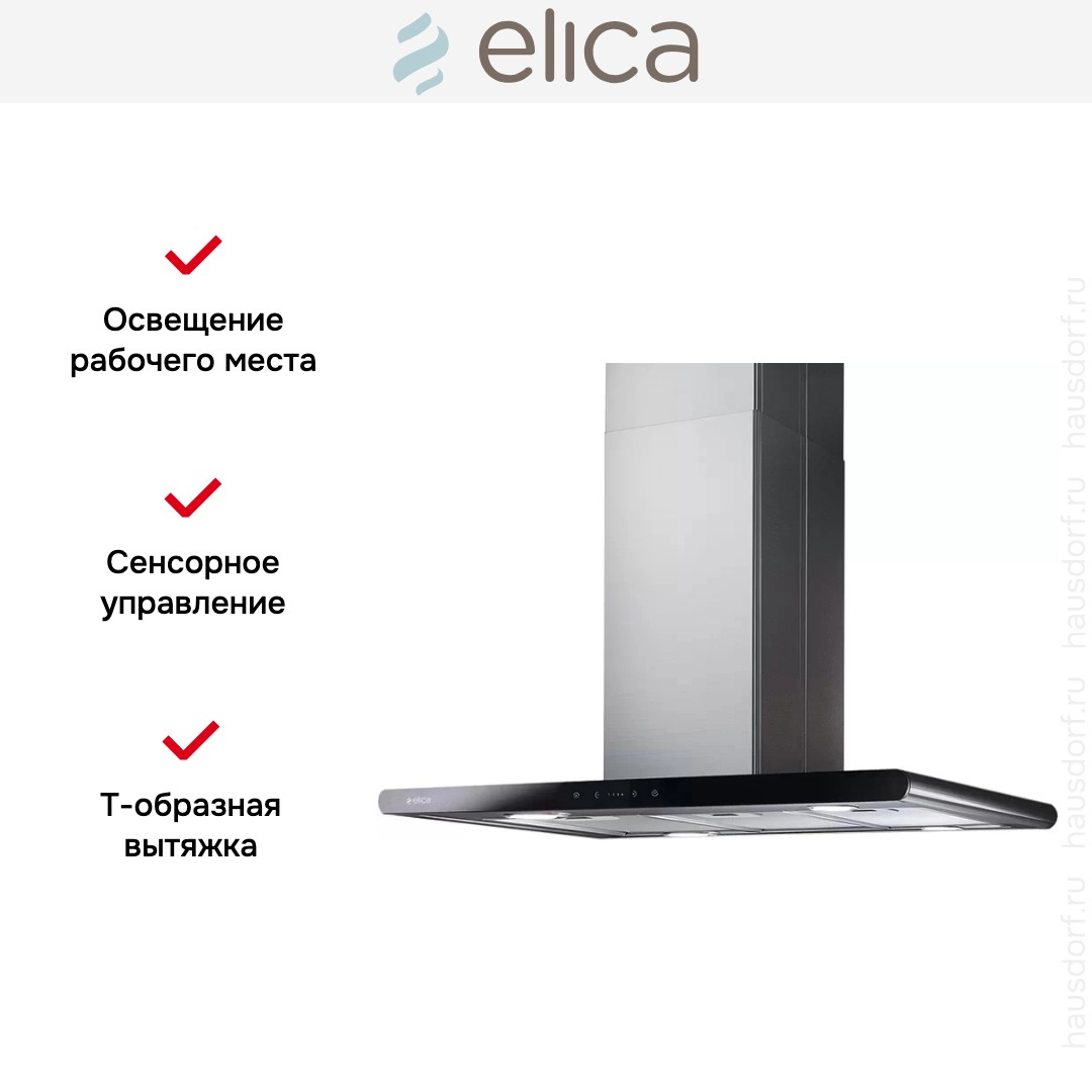 Настенная вытяжка от Elica сочетает в себе широкий функционал, простоту управления и высокие показатели эффективности. Прибор оборудован мощным двигателем, который характеризуется низким уровнем шума.