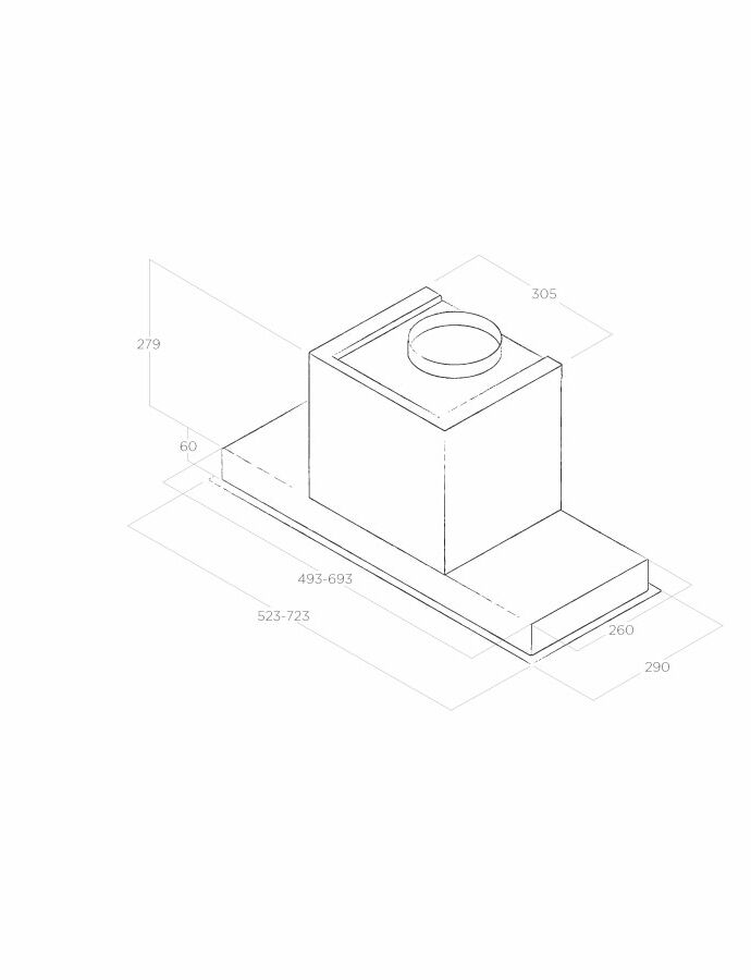 У многих встраиваемых моделей глубина может регулироваться, а рабочая всасывающая поверхность — увеличиваться благодаря выдвижному козырьку, но габариты корпуса такой вытяжки должны соответствовать размерам подвесного шкафа. Выбирать основные размеры вытяжки с соблюдением всех требований эффективности и безопасности работы следует также не в ущерб общему дизайну помещения.