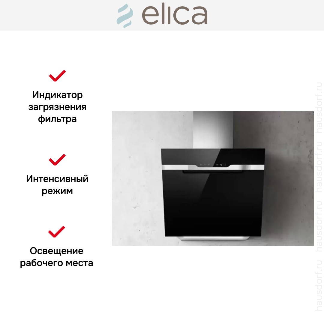 Наклонная вытяжка от Elica — это сочетание высокой производительности и элегантного внешнего вида. Модель устанавливается на стену. Стандартная ширина — 60 сантиметров подразумевает монтаж над варочными панелями и плитами до четырех конфорок. Продуманная конструкция прибора обеспечивает беспрепятственный доступ к рабочей зоне.