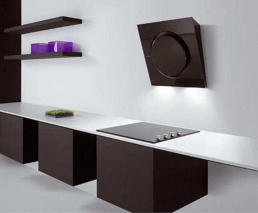 Самыми популярными остаются черные вытяжки. Черный цвет отлично сочетается с любыми другими, на нем не так заметны загрязнения. Кроме того, черные тона можно вписать в кухню любого стиля, от хай-тек до классического. В черном цвете изготавливают все типы вытяжек — купольные, наклонные, настенные, подвесные, островные, Т-образные. Особенно интересны и разнообразны модели из закаленного стекла, которое удачно гармонирует со стеклокерамическими варочными панелями.