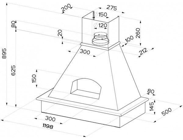 Эти модели выделяются своей формой — треугольным или более фигурным куполом, которым располагается ровно над варочной панелью. Такая конструкция считается традиционной и вместе с коробом воздуховода напоминает классическую каминную трубу. Подойдет стандартной и большой кухне в зависимости от ширины купола.