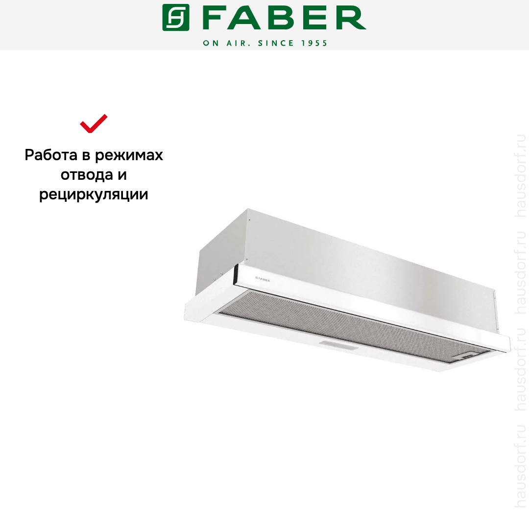Итальянская компания Faber завоевала мировую известность благодаря своим оригинальным и надежным вытяжкам. История бренда началась в 1955 году: инженер А. Галасси с партнерами основал компанию по производству изделий из пластика — самого модного в то время материала. Оригинальную вытяжку фирма представила в 1958 году — она получила название по наименованию пластмассы Plexiglas.