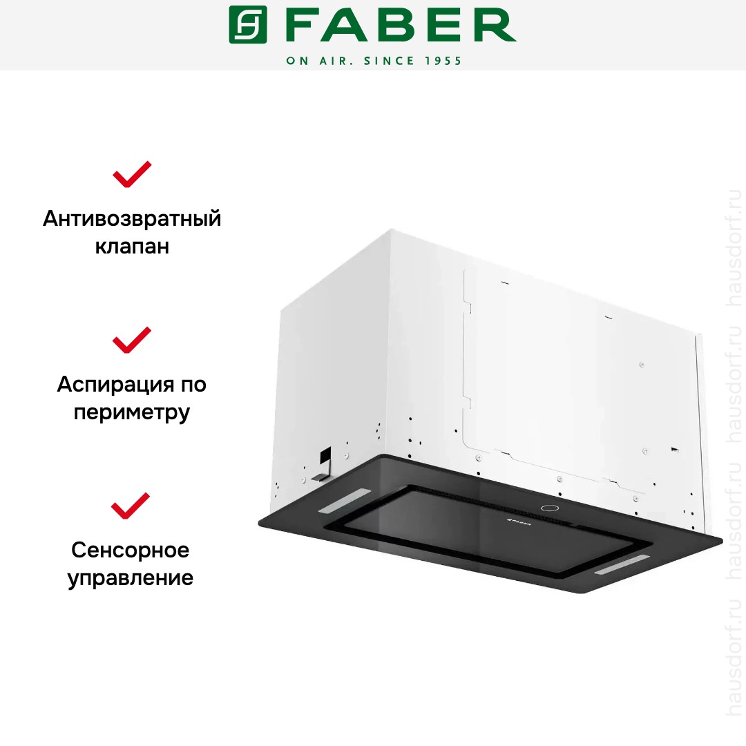 Вытяжка Faber ARIA BK 52 — это элегантное и высокоэффективное решение для современной кухни, сочетающее скрытый монтаж, мощную вентиляцию и безупречный дизайн. Модель относится к категории встраиваемых устройств и предназначена для размещения внутри навесного шкафа, что позволяет полностью сохранить целостность интерьера и избежать визуального загромождения пространства. Благодаря компактным габаритам — высоте 32,4 см, ширине 52 см и глубине 29,5 см — техника легко вписывается в стандартные кухонные модули, оставаясь незаметной при закрытых фасадах и открываясь только в момент эксплуатации.