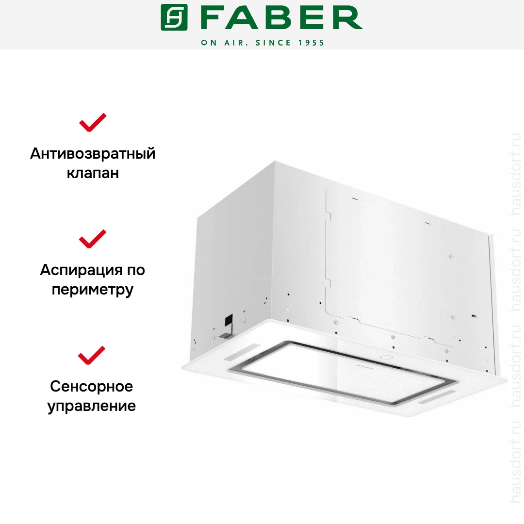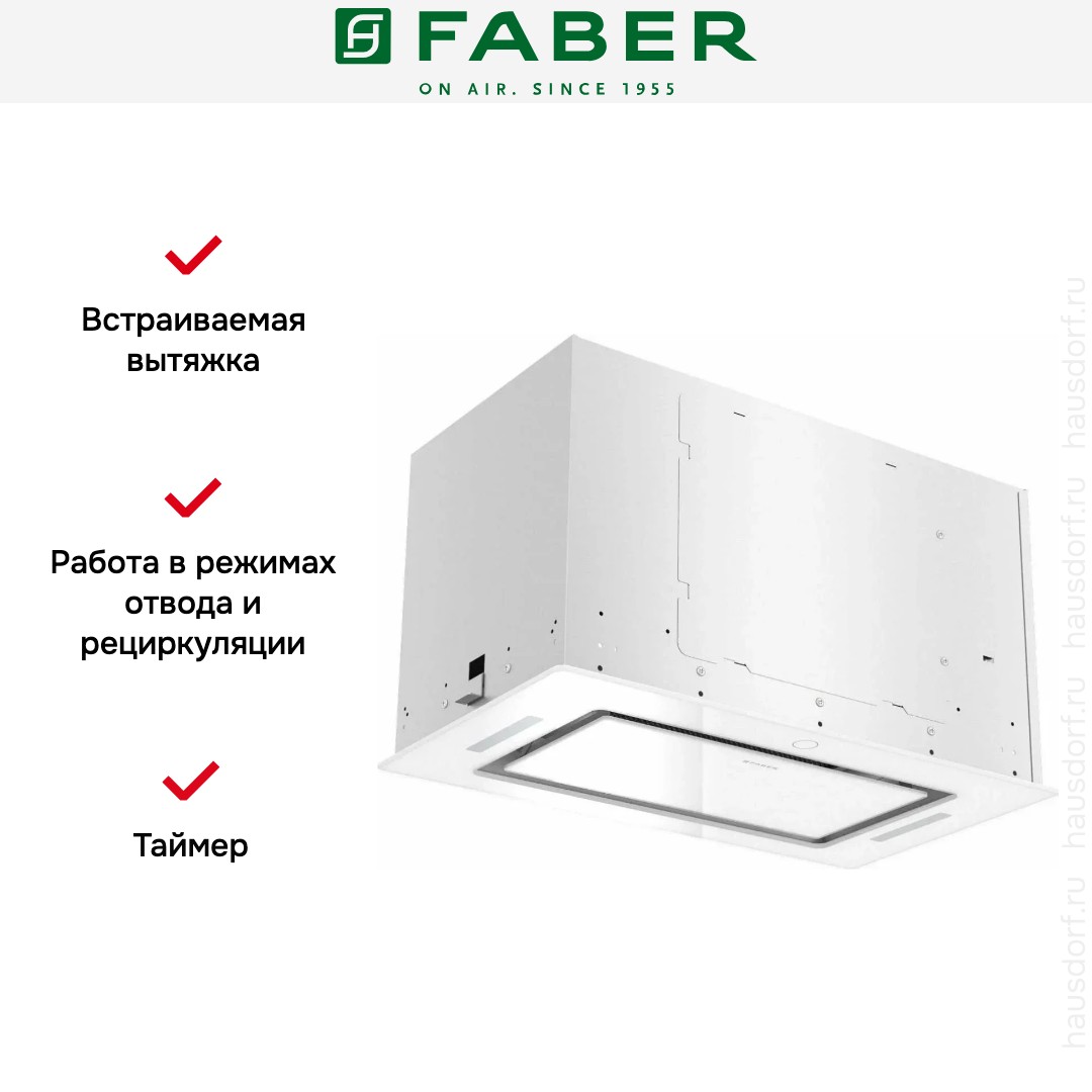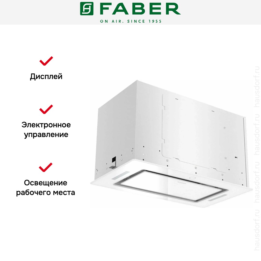 Вытяжка Faber ARIA WH 52 — это изящное и функциональное решение для современной кухни, сочетающее скрытый монтаж, высокую эффективность и эстетичный дизайн. Модель относится к категории встраиваемых устройств и предназначена для размещения внутри навесного шкафа, что позволяет сохранить лаконичность интерьера и избежать визуального загромождения пространства. Благодаря компактным габаритам — высоте 32,4 см, ширине 52 см и глубине 29,5 см — техника легко интегрируется в стандартные кухонные модули, оставаясь незаметной при закрытых фасадах и раскрываясь лишь в момент использования.