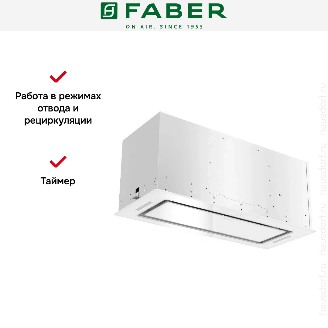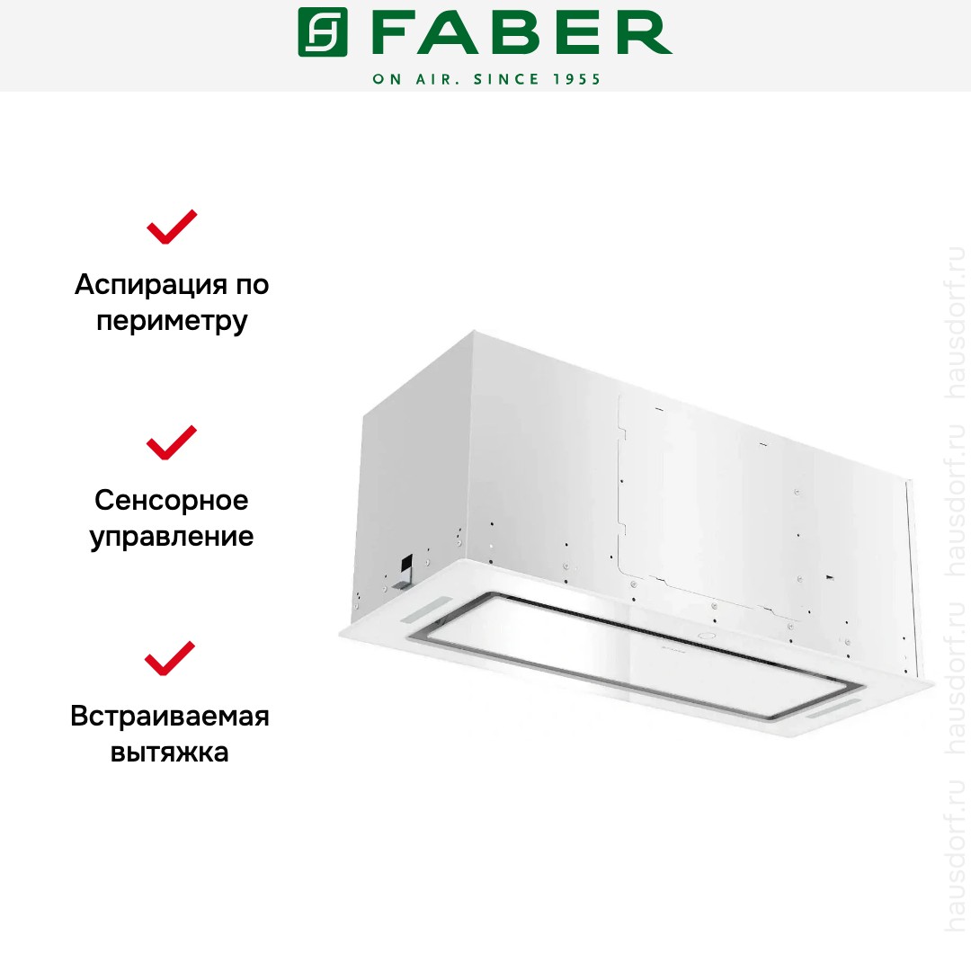Несмотря на скрытый монтаж, вытяжка демонстрирует высокую производительность и работает с минимальным уровнем шума, что делает её подходящей как для компактных квартир, так и для просторных кухонь в частных домах. Конструкция продумана до мелочей: гладкая белая поверхность, плавные линии и отсутствие выступающих элементов подчёркивают светлую, воздушную эстетику интерьера. Управление интуитивно понятно, а доступ к фильтрам организован так, чтобы их можно было легко снять для очистки или замены, что упрощает регулярное обслуживание.