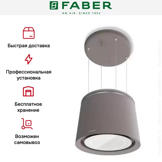 Итальянская компания Faber завоевала мировую известность благодаря своим оригинальным и надежным вытяжкам. История бренда началась в 1955 году: инженер А. Галасси с партнерами основал компанию по производству изделий из пластика — самого модного в то время материала. Оригинальную вытяжку фирма представила в 1958 году — она получила название по наименованию пластмассы Plexiglas.