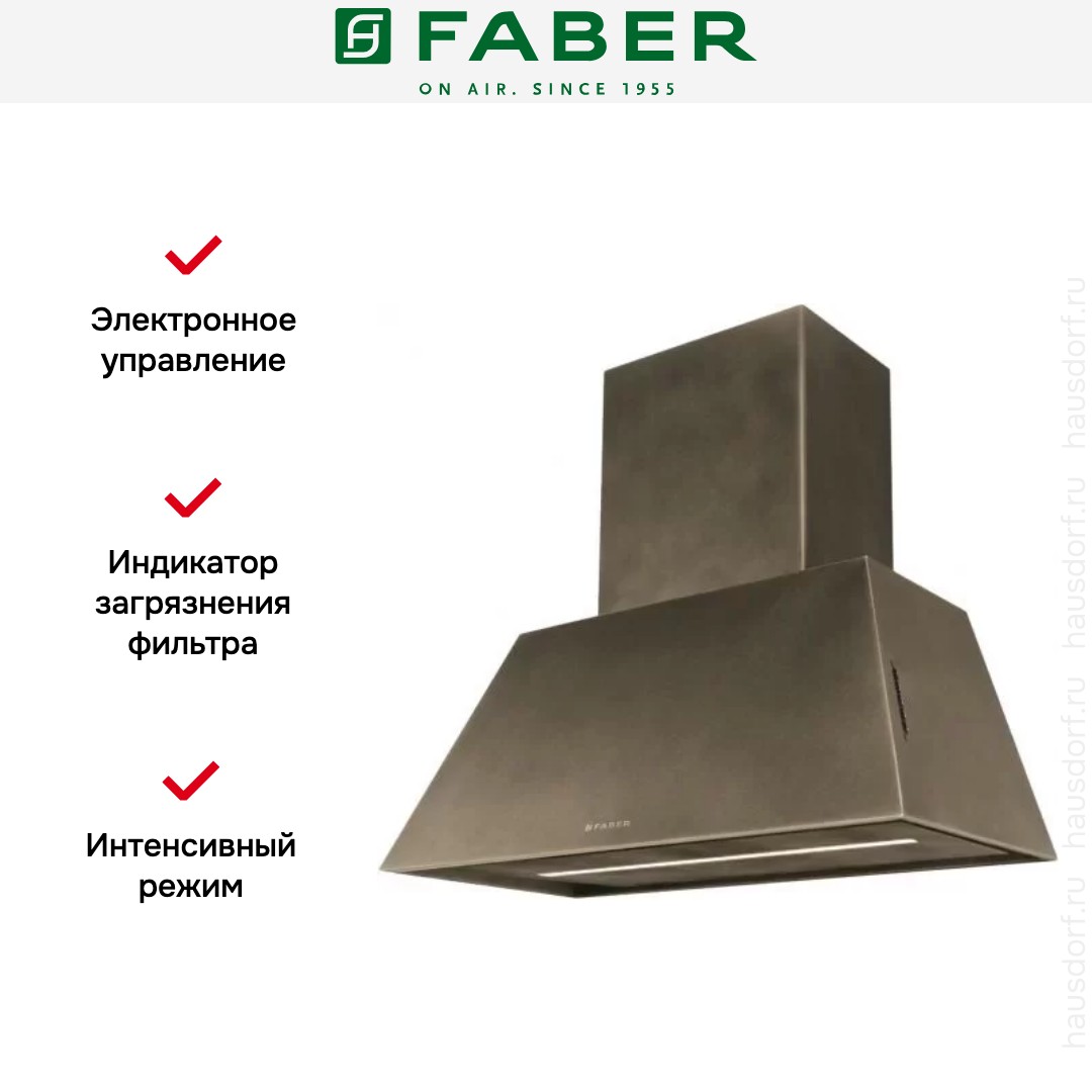 Итальянская компания Faber завоевала мировую известность благодаря своим оригинальным и надежным вытяжкам. История бренда началась в 1955 году: инженер А. Галасси с партнерами основал компанию по производству изделий из пластика — самого модного в то время материала. Оригинальную вытяжку фирма представила в 1958 году — она получила название по наименованию пластмассы Plexiglas.