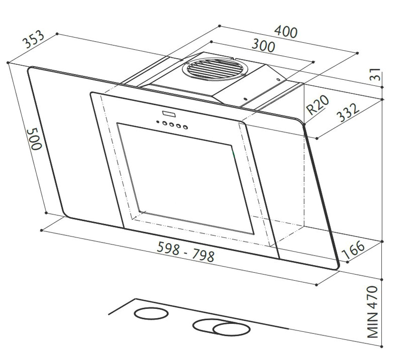 У многих встраиваемых моделей глубина может регулироваться, а рабочая всасывающая поверхность — увеличиваться благодаря выдвижному козырьку, но габариты корпуса такой вытяжки должны соответствовать размерам подвесного шкафа. Выбирать основные размеры вытяжки с соблюдением всех требований эффективности и безопасности работы следует также не в ущерб общему дизайну помещения.