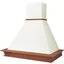 Особенно разнообразен ассортимент классических вытяжек с окантовкой из натурального дерева. Корпус таких моделей выполняется в спокойном белом или бежевом цвете, хорошо сочетающемся с оттенками натурального дерева — мореного дуба, бука, вишни или ореха. Нередко для окантовки используется окрашенное дерево в тон с цветом купола: особенно популярны оттенки ванили, бежевый и кремовый. Иногда дерево специально оставляют неокрашенным, чтобы пользователь мог подобрать оттенок самостоятельно.