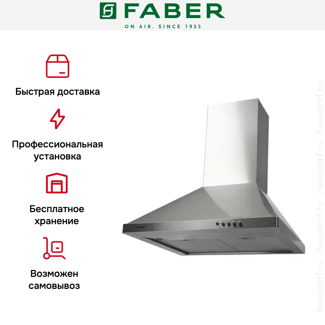Итальянская компания Faber завоевала мировую известность благодаря своим оригинальным и надежным вытяжкам. История бренда началась в 1955 году: инженер А. Галасси с партнерами основал компанию по производству изделий из пластика — самого модного в то время материала. Оригинальную вытяжку фирма представила в 1958 году — она получила название по наименованию пластмассы Plexiglas.